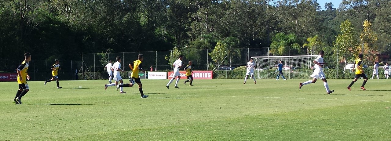A equipe sub-15 entrou em campos antes e sentiu o peso dos são-paulinos. Comandos pelo técnico Rodrigo Bellão, os garotos fizeram um grande jogo, neutralizando o ataque do São Paulo e criando a melhor chance do primeiro tempo. O volante Ribas, de frente com o goleiro, finalizou no canto esquerdo e a bola passou rente à trave. Até a metade do segundo tempo o jogo seguia equilibrado, mas numa jogada de bola parada a equipe da capital abriu o marcador.